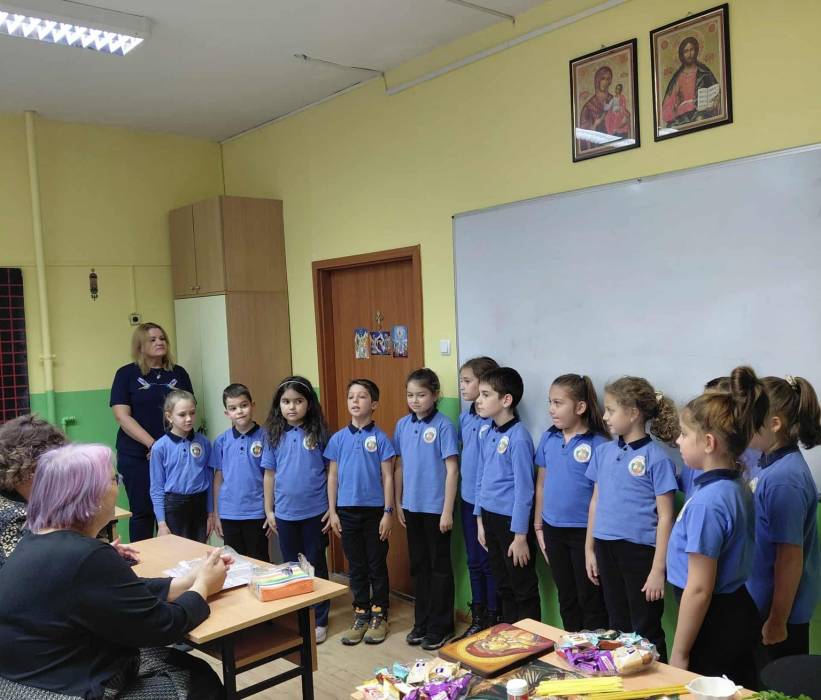 Д-р Росица Георгиева подари на кабинета икона на св. Богородица и подчерта значението на религиозното образование за ценностната ориентация на младото поколение. Ученици от 2 клас поздравиха гостите с кратка програма.